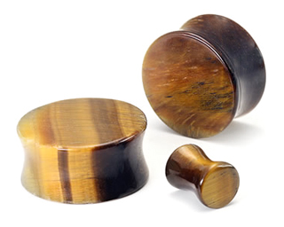 Плаги из камня "тигровый глаз" золотисто-коричневого цвета с шелковистым отливом.