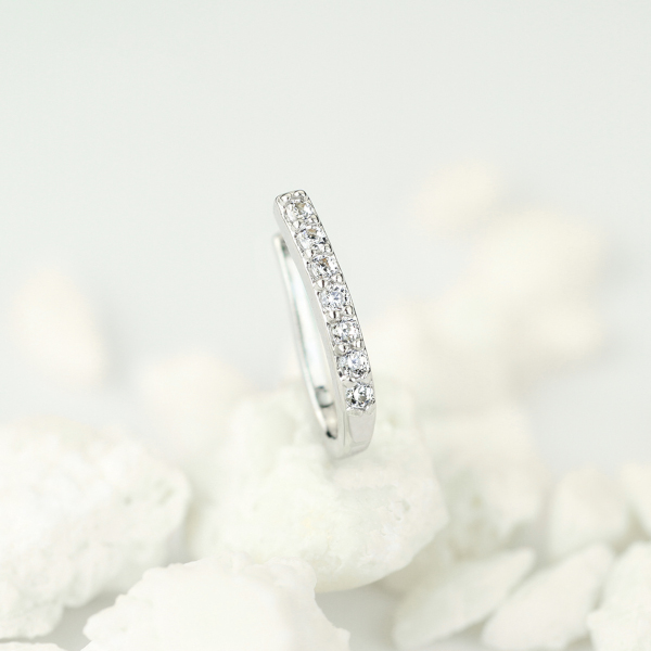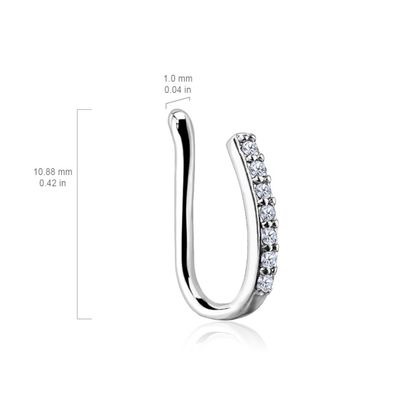 Изящная обманка из родированной латуни, имитирующая нострил, украшена 7-ью кристаллами.