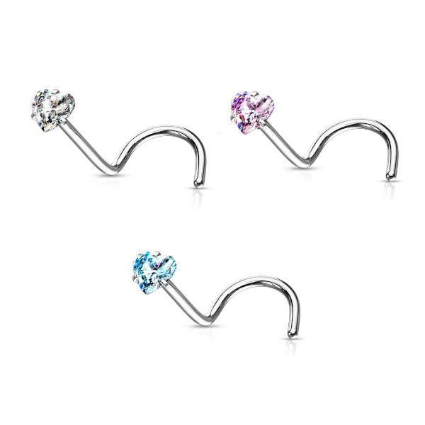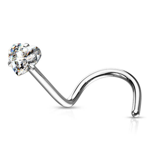 Нострил из хирургической стали 316L с кристаллом в форме сердца.