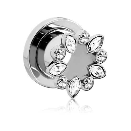 Тоннель из хирургической стали 316L в форме цветка украшенного стразами.