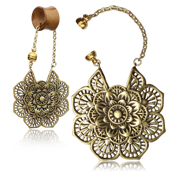 Латунные серьги для тоннелей в виде цветка лотоса.