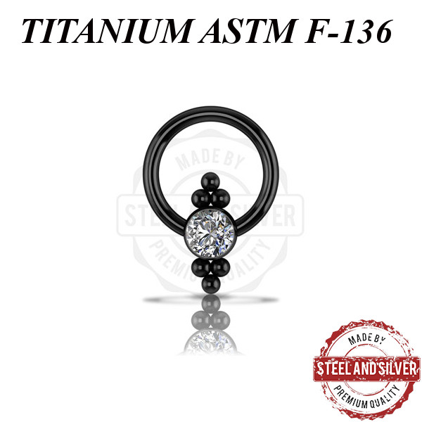 Кольцо из имплантационного титана 6Al-4V-Eli ASTM: F-136 с черным PVD покрытием. Украшено кластером с Premium Zirconia.