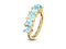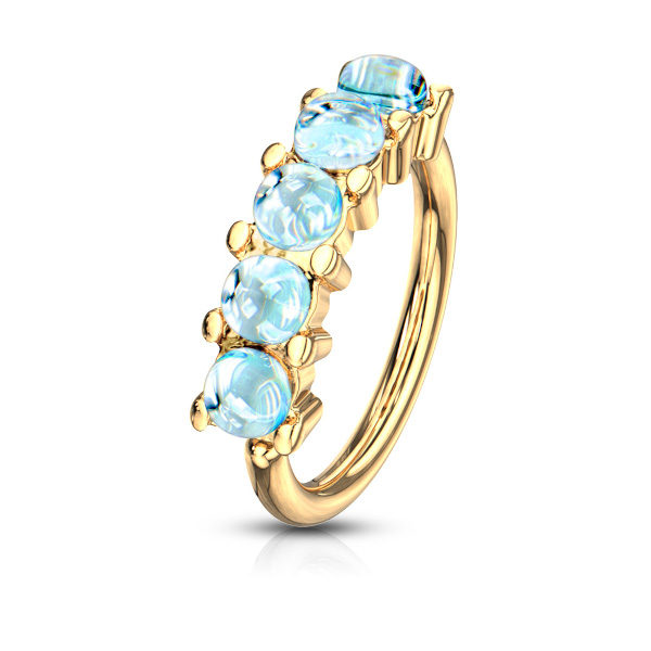 Раздвижное кольцо из хирургической стали 316L с золотым PVD покрытием, украшено голубыми эпоксидными кабошонами.
