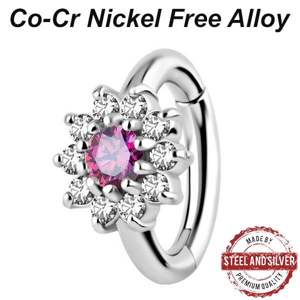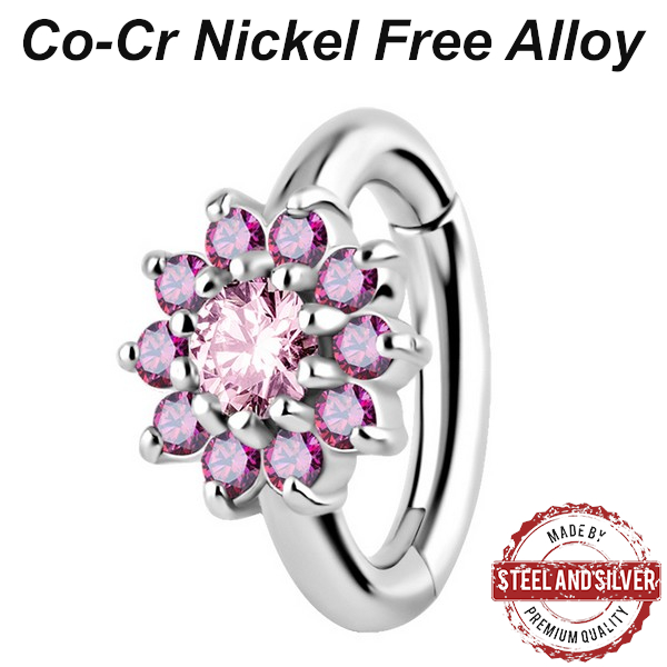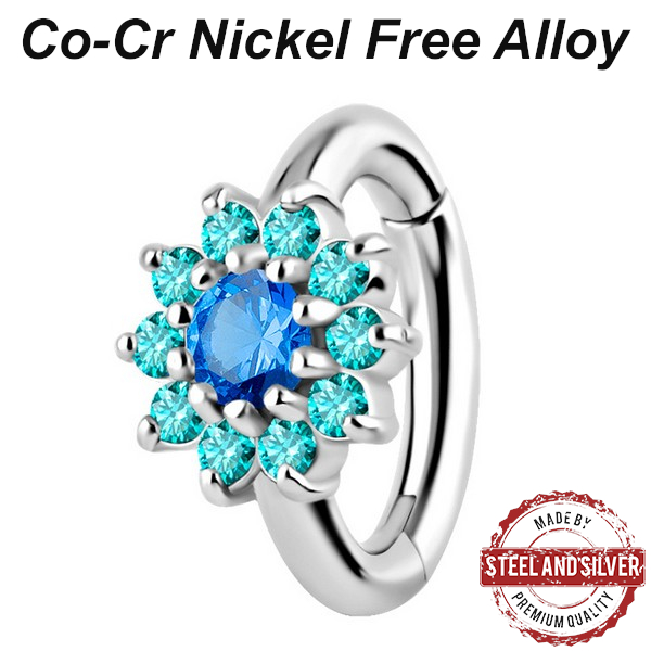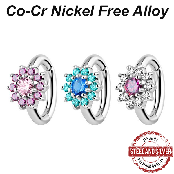 Овальный кликер из кобальт-хрома. Украшен кристаллами Premium Cubic Zirconia. Диаметр декоративной части - 7мм. В описании указан цвет кристалла в центре.