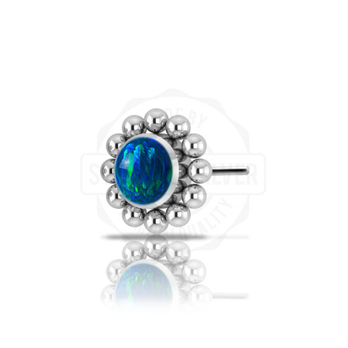 Вставка из имплантационного титана 6Al-4V-Eli ASTM: F-136 для безрезьбовых украшений. Украшена лабораторным опалом диаметром 3мм.