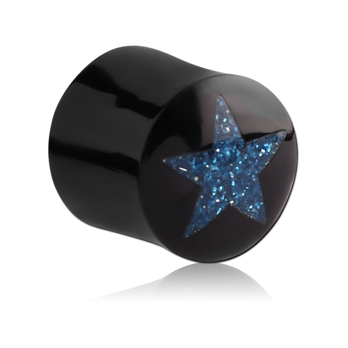 Плаги из рога буйвола с инкрустацией опаловой крошки под эпоксидной смолой.