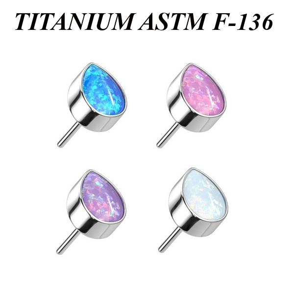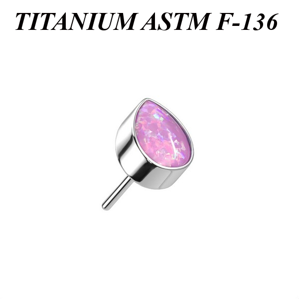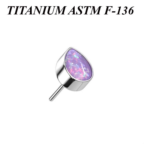 Вставка для безрезьбовых украшений из имплантационного титана 6Al-4V-Eli ASTM: F-136. Украшена лабораторным опалом. Размер декоративной части: 3,5х4,5мм.