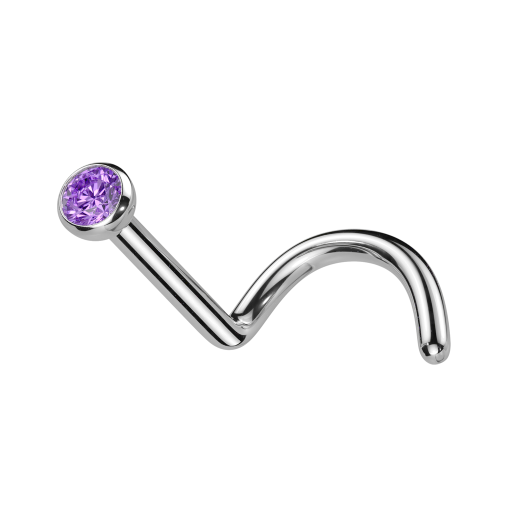 Нострил из хирургической стали 316L украшен фианитом диаметром 2,5мм.