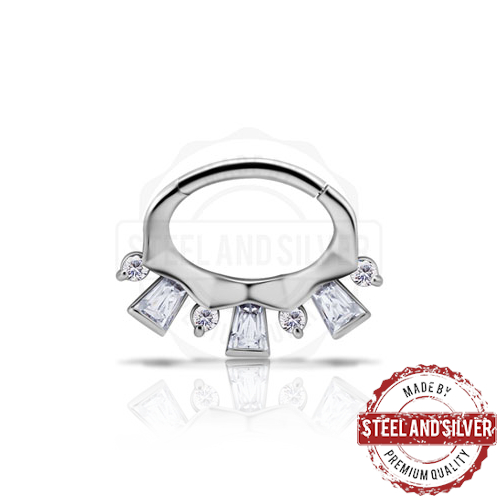 Овальный кликер из хирургической стали 316L. Украшен прозрачными кристаллами Premium Cubic Zirconia.
