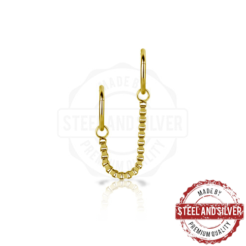 Цепочка из хирургической стали 316L. Представлена в двух вариантах: классическая стальная и с PVD покрытием 24х каратного золота. Подходит для украшений толщиной не более 1,2мм.