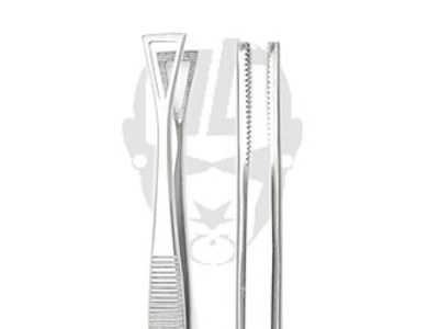 Большой, треугольный зажим для пирсинга в форме пинцета с фиксатором ползунком.